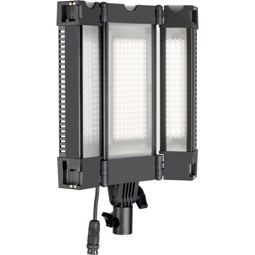This three-section folding light design provides portability because its 8.25 x 10.2 LED panel fits neatly into the frame. Although this light might appear large it maintains a compact shape for simple transportation between locations and makes an excellent selection as an on-site portable studio.